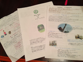 こちらが作っていただいた、ヨガ&アロマトリートメント または ヨガ&痩身エステ の案内です。今まで、私のグループレッスンにいらしている方が、妊娠とか怪我とか体調不良などでプライベートでやるという機会はありましたが、初ヨガで初プライベートレッスンで教えるというのは初めてでした。どうなのかなとおもっていたけれど、1対1でやれるって丁寧に教えられるからみなさんとっても上達(ちょっとこの表現は語弊があるけれども)が早いように思います。私としても「ひとりひとりにあったヨガ」を大切にしていますので、マンツーマンレッスンは理想のクラスです。ヨガウェアもマットもお水も用意してあります。ヨガウェアもヨガウェアブランドの着心地の良いおしゃれなもので、シャワーもお風呂あります(どちらかはメニューによる)。オイルなどもオーガニックのものにこだわってるそうです。空間も隠れ家のようで、アロマとロウソクの暖かい火につつまれて落ち着くいい雰囲気です。自分の教室はレンタルスペースなのとリーズナブルがウリなので、残念ながらこういう素敵な空間を提供できないのです。ちょっと贅沢ですが、パーソナルヨガ&トリートメントぜひ体験してみてください。真心込めてレッスンいたします。