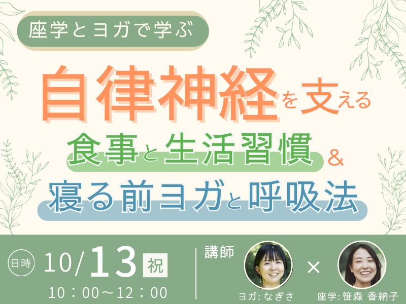 【10/13 座学&ヨガ】自律神経を支える食事と生活習慣&毎日やりたい寝る前プチヨガと呼吸法