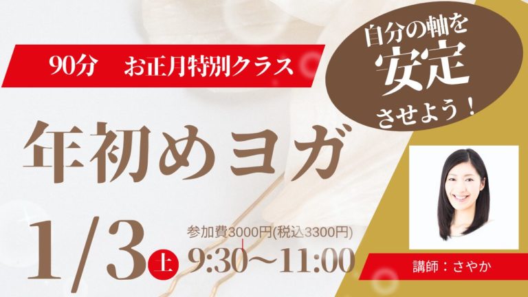 年末年始の運動不足解消や食べ過ぎ対策にも、お正月の年始めのヨガに是非いらしてください。