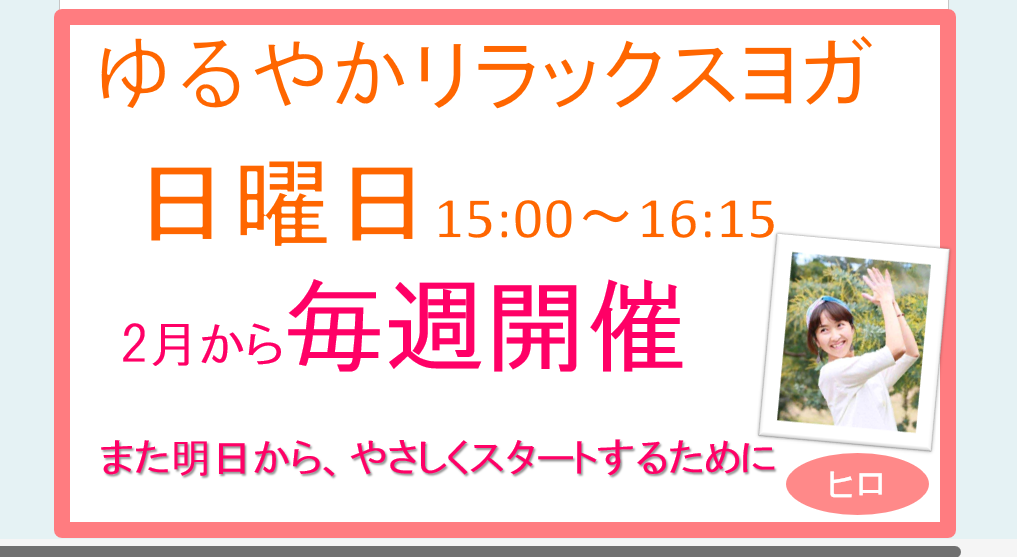 日曜日夕方に、ゆるやかリラックスヨガ 毎週開催へ