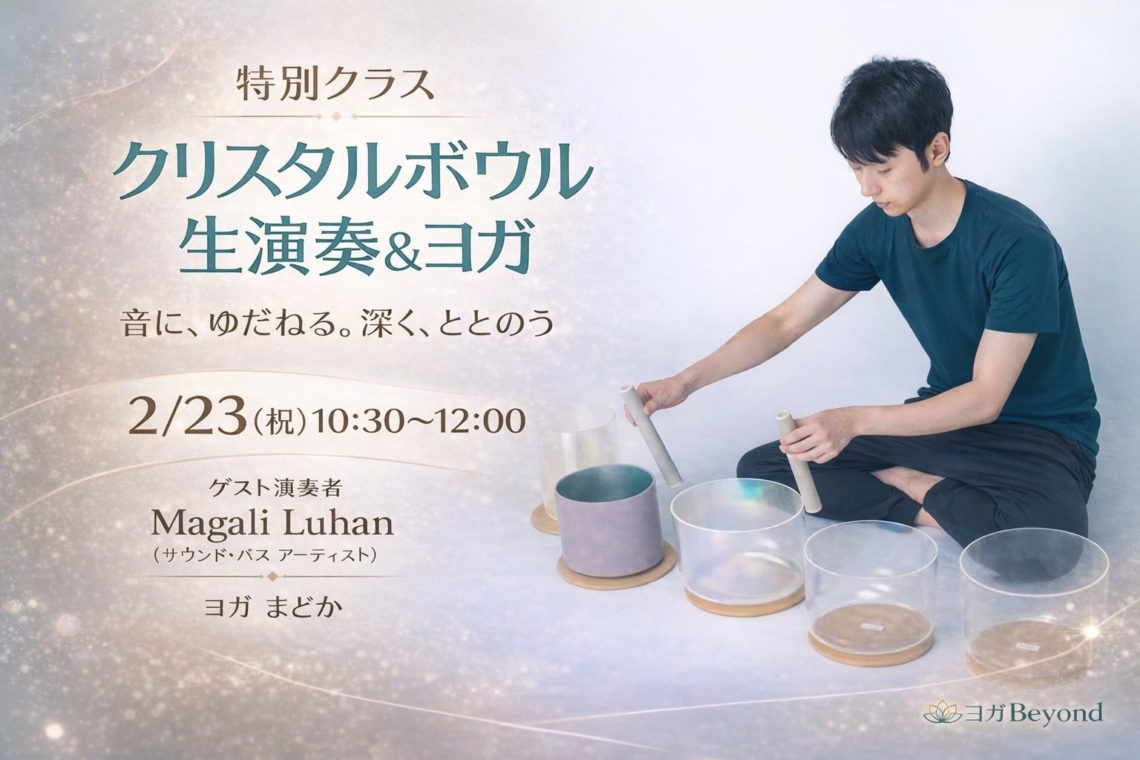 今回の特別クラスでは、クリスタルボウルの生演奏とヨガを組み合わせた、いつもとは少し違う、深いリラクゼーションの時間をお届けします。