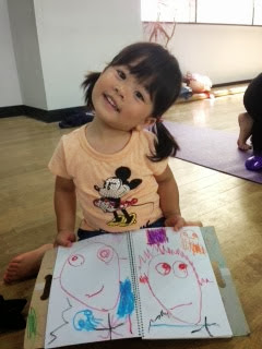 今日のキッズ&ママヨガクラスのかわいい生徒ちゃんです。なんと2歳半にしてこの素晴らしい絵!目も口もあるし、顔ってわかるよ!まるがこんなに上手にかけるんだね。ギザギザ髪の毛もすごいテクニックのはず。右上のオレンジのはタコ、左下の水色のはイカだって。分かるよ!足がいっぱいだ!朝描いて私に見せるといって持ってきてくれたそう。うれしすぎるし、かわいすぎる!そして2歳とは思えない。将来は画家かな?素晴らしいです!いいものを見せてもらいました。